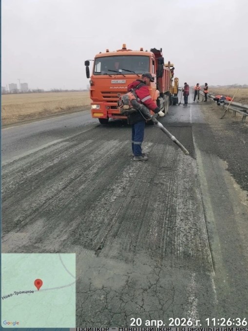 На автодороге Троицкое - Новотроицкое начались работы по ямочному ремонту 130 выбоин. Подрядчик уже приступил к фрезерованию изношенного покрытия.