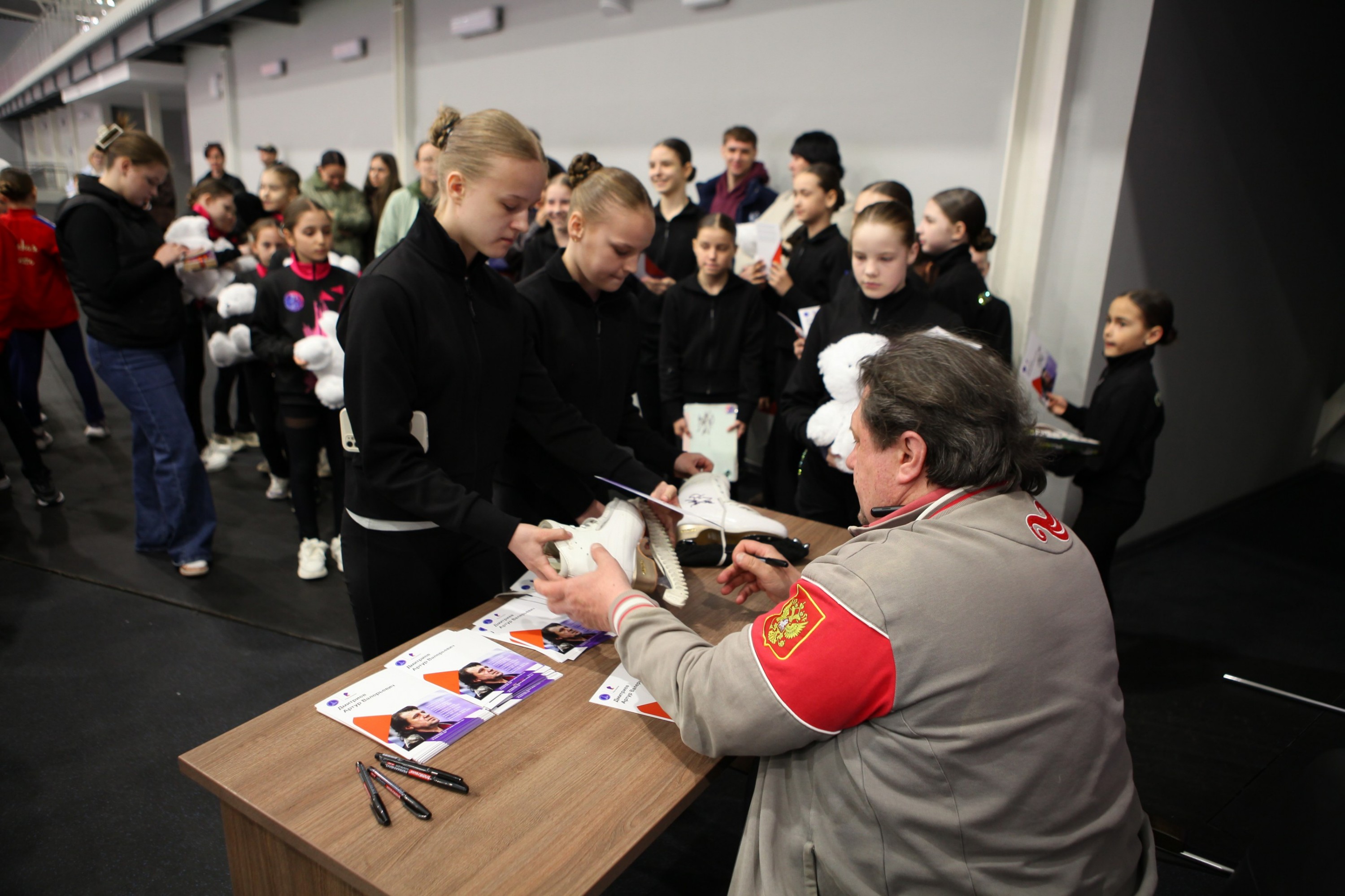 Завершился мастер-класс автограф-сессией: Артур Дмитриев подписал для участников специальные карточки и коньки.