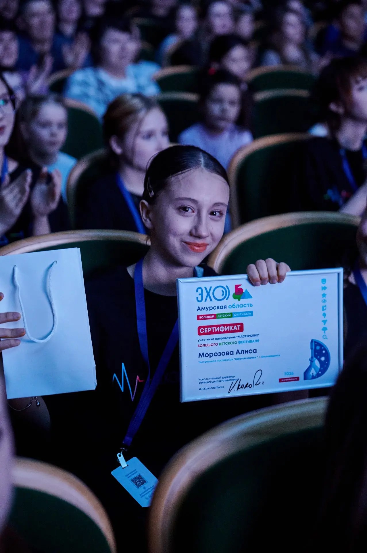 В Амурской области завершилась специальная программа «Эха Большого Детского фестиваля», собравшая более 6000 зрителей на 62 мероприятиях. На закрытии объявили победителей направления «Мастерские» и сообщили о проведении фестиваля в 2028 году.