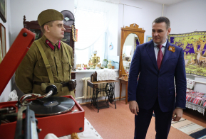 Экскурсию для главы региона провёл учитель истории школы № 23 Алексей Козлита. Он показал тематические зоны: зал довоенного быта, «Немецкий зал» с планами захватчиков и системой концлагерей, «Зал Красной Армии» с вооружением и бытом советских солдат, «Зал конфликтов современности» и «Зал славы», где демонстрируются фильмы-реконструкции, созданные учениками школы.