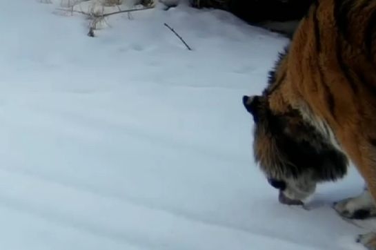 В Хинганском заповеднике Приамурья опубликовали новое видео с тигрицей Еленой, которая освежилась снегом. Запись сделана в марте.