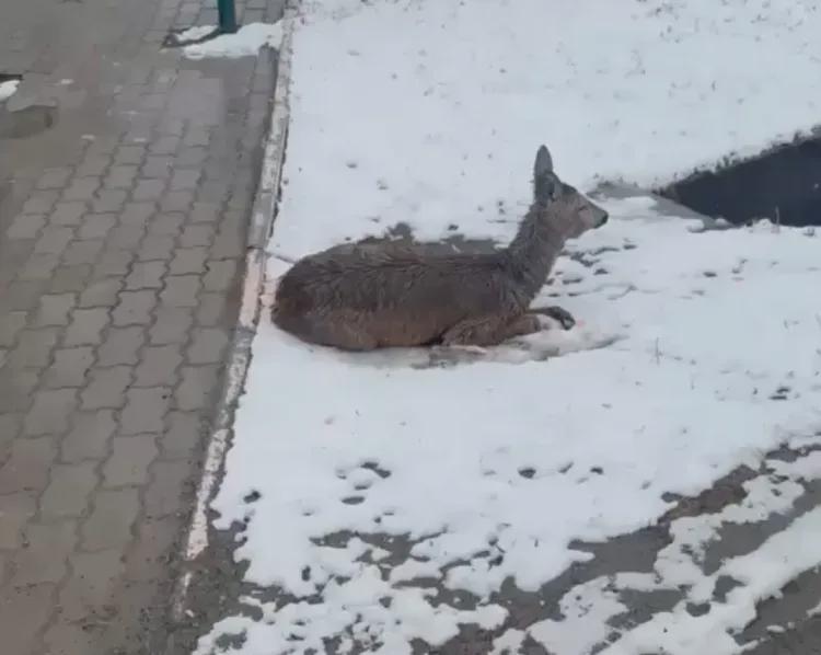На кадрах видно, как измученное животное лежит на снегу и тяжело дышит. Похоже, косуля только что освободилась из металлического плена. Когда камера перемещается на забор, рядом с конструкцией заметны следы крови. Вероятно, косуля поранилась, пытаясь выбраться.