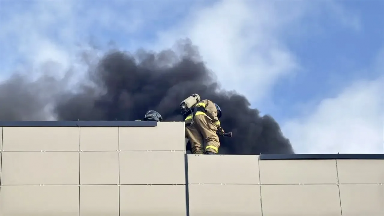 В Южно-Сахалинске на стройке вспыхнула кровля здания. Пламя охватило 200 квадратных метров.