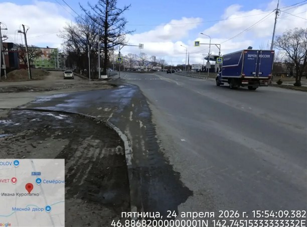 На улице Ивана Куропатко, ведущей к аэропорту Южно-Сахалинска, выявили вынос грязи со стройплощадки новой поликлиники. Собственник дороги поручил провести полную очистку проезжей части.