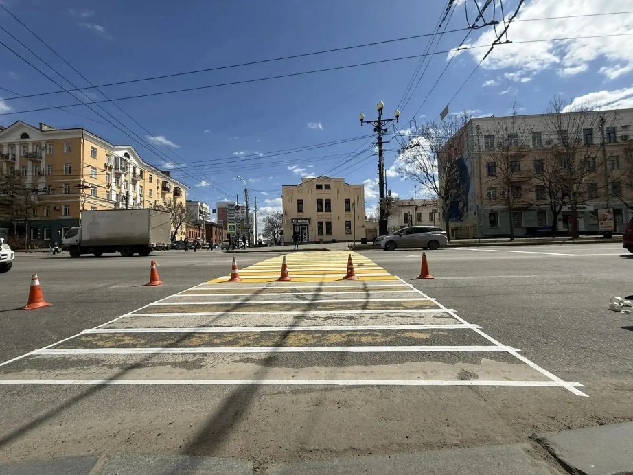 Сейчас разметку обновляют на улице Муравьева-Амурского — от улицы Тургенева до улицы Ленина. Здесь планируется нанести более 1000 квадратных метров разметки. Особое внимание уделяют стоп-линиям и пешеходным переходам: их покрывают холодным пластиком. Этот материал износостойкий, устойчив к осадкам и застывает быстрее краски, что ускоряет работы.