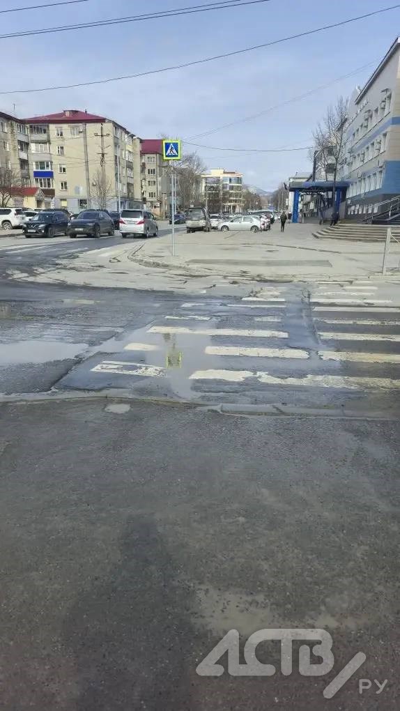 На перекрёстке в Южно-Сахалинске из-за утечки образовалось 'озеро'