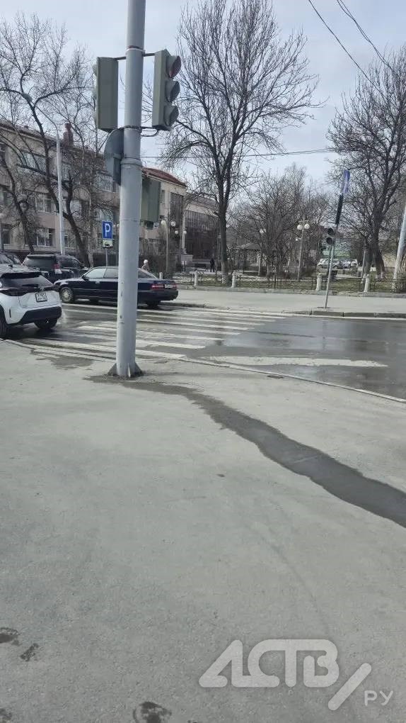 На пересечении улиц Хабаровской и Амурской в Южно-Сахалинске уже третью неделю наблюдается утечка воды. Местный житель обратил внимание на эту проблему, отметив отсутствие оперативных мер со стороны коммунальных служб.