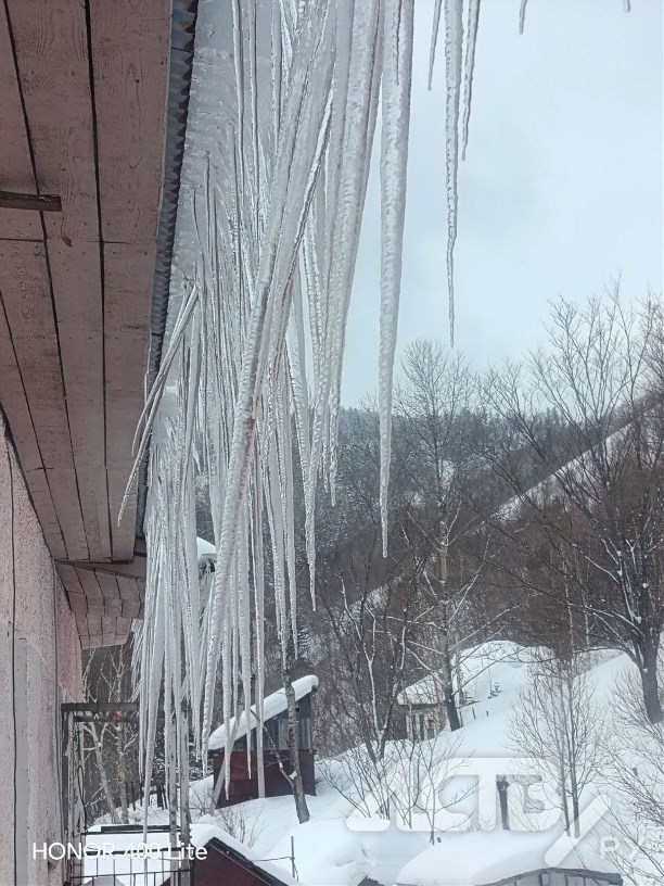 Сложившуюся ситуацию усугубило потепление: с крыши нависли большие сосульки, которые не сбивают. Жильцы опасаются, что лёд может упасть на пешеходов или выбить окна в доме. «Некуда бежать, если ледяной наст съедет сверху, с тропинки по сугробу далеко не убежишь», — поделились они.