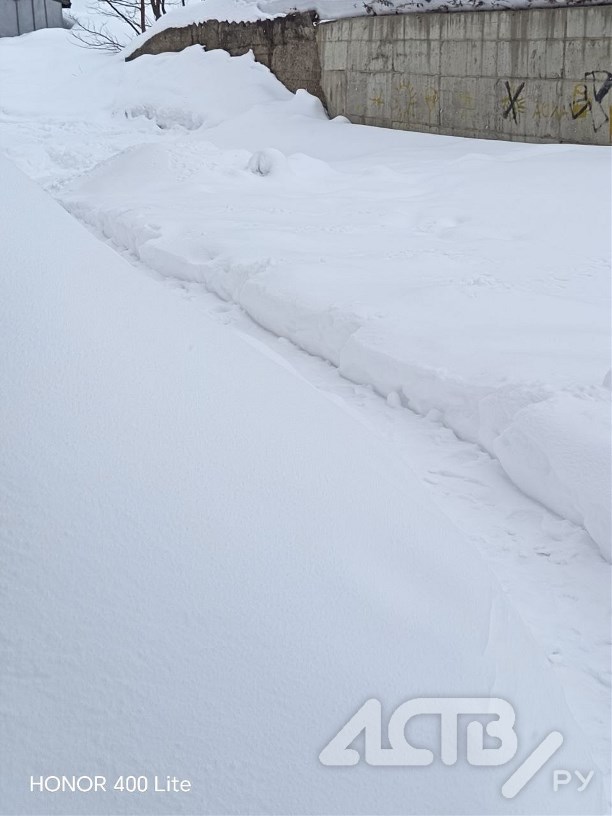По словам местных жителей, за всю зиму двор их дома убирали всего один раз, из-за чего уровень снега почти сравнялся с козырьком над крыльцом.