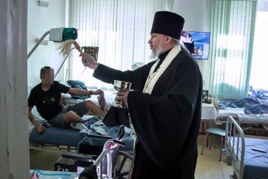 В Хабаровске прошёл традиционный пасхальный крестный ход в корпусах военного госпиталя. Прихожане Елизаветинского храма поздравили пациентов и медицинский персонал с праздником.