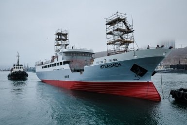 На Восточной верфи, управляемой Амурским судостроительным заводом (ОСК), прошла церемония спуска на воду нового краболовного судна «Ительмен» проекта 03141. Судно предназначено для добычи и перевозки краба и построено в рамках программы обновления российского рыбопромыслового флота.