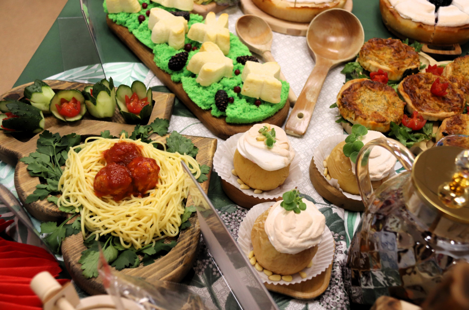 «Наша команда оформила тематический стол, посвященный Году единства народов России. Для этого испытания презентовали три блюда из меню школьного завтрака: творожную запеканку со сгущенным молоком, плов с курицей и свежим огурцом, а также перловую кашу со зразой и сметанным соусом. Дополняет композицию традиционный горячий напиток – чай с лимоном, сервированный в самоваре с сушками», – рассказала повар школы села Аван имени М.И. Венюкова Наталья Исаева.