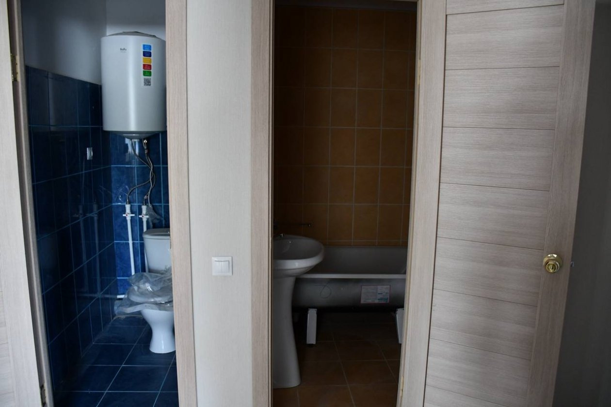 По словам Карпукова, работы выходят на финишную прямую. Строители занимаются внутренней отделкой: клеят обои, укладывают линолеум. Параллельно устанавливают сантехнику, электротитаны и электроплиты.