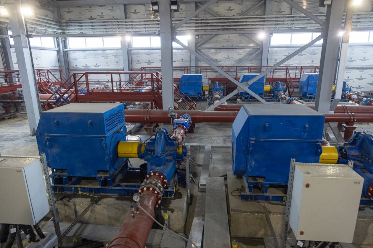На территории водозабора установили два резервуара чистой воды объемом 5 тысяч кубометров каждый — самые крупные в регионе. Насосы для объекта отличаются высокой мощностью — каждый по 400 киловатт.