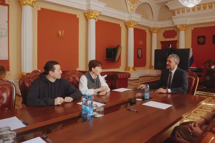 Встреча губернатора Василия Орлова с народным артистом России Сергеем Безруковым и директором Московского Губернского театра Ларисой Вильясте была посвящена перспективам культурного сотрудничества.