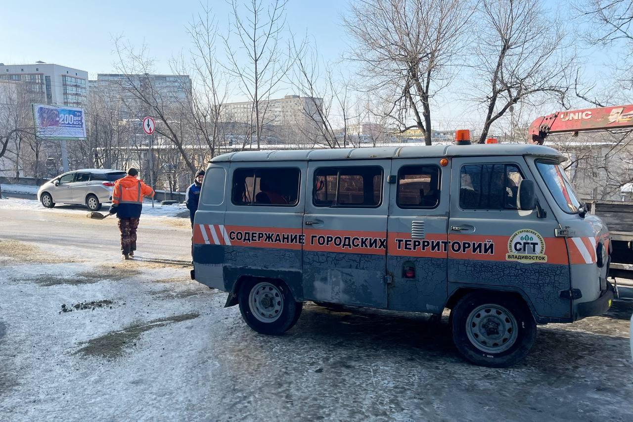 В мэрии Владивостока заявили, что городские службы и подрядчики работают в интенсивном режиме. За последние 24 часа они обработали реагентами свыше 100 тысяч квадратных метров тротуаров и убирают снежно-ледяную массу.